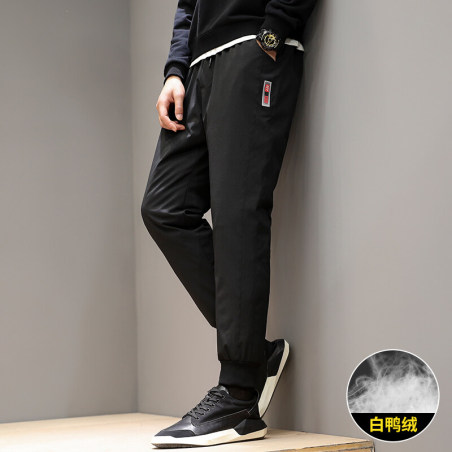 羽绒裤男外穿修身加绒加厚白鸭绒保暖裤韩版束脚直脚裤运动裤户外