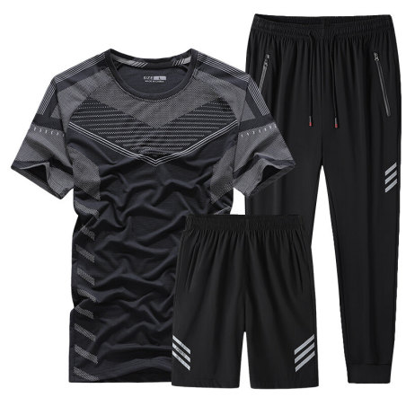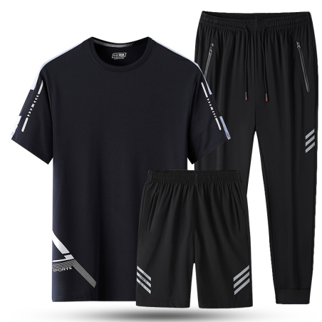 男休闲运动健身套装夏季新款冰丝宽松透气速干三件套