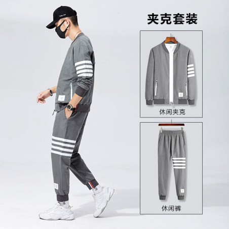 2017春秋季薄款男士印花休闲运动套装青年修身大码夹克男