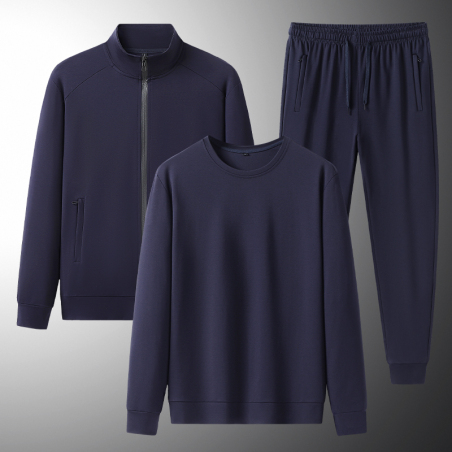 男装2023春秋男士休闲套装新款立领三件套卫衣天丝罗马面料运动服