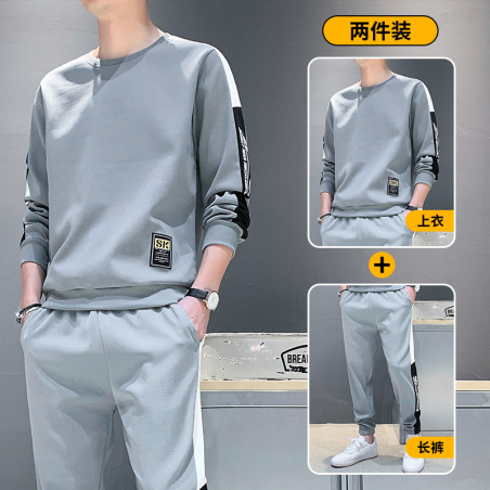 2023春秋季新款男士卫衣休闲百搭青年帅气长袖T恤运动套装两件套