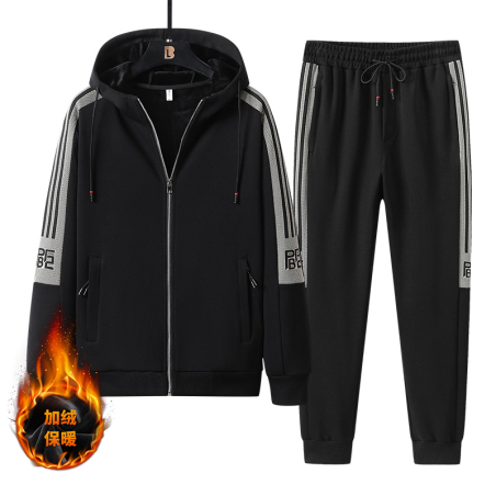 秋冬季潮流休闲圆领时尚加绒加厚卫衣青年帅气长袖套装