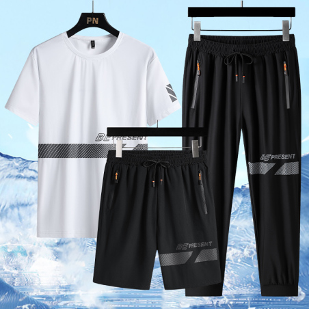 男士运动套装休闲夏季冰丝搭配帅气三件套装
