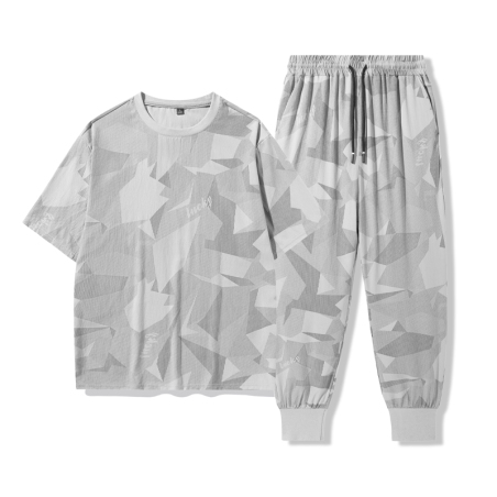 冰丝短袖t恤男士夏季套装男薄款透气一套帅气潮牌夏天休闲运动套装男半袖衣服
