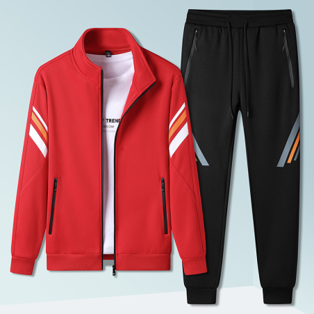 新款秋季套装男士休闲运动套装男士开衫翻领两件套棒球领