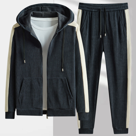 青少年灯芯绒运动休闲套装男士春季新款连帽青少年帅气条纹潮牌百搭两件套