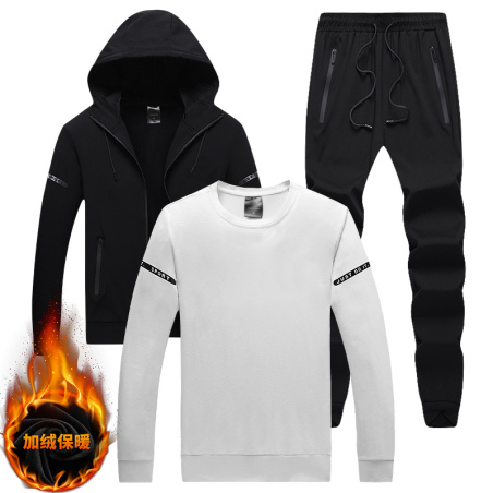 2021加绒开衫立领三件套拉链纯棉卫衣休闲运动套装男