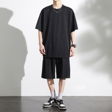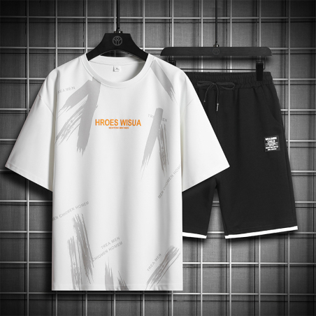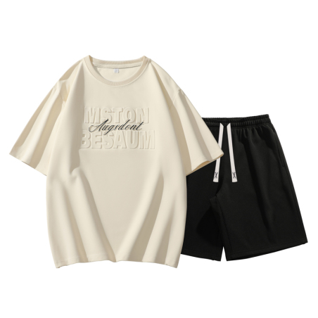 日系白底平铺2024新款夏季男潮流宽松服潮牌学生短袖T恤套装短袖两件套