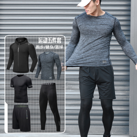 2023健身套装男五件套跑步运动速干篮球紧身衣健身房训练服秋冬健身服