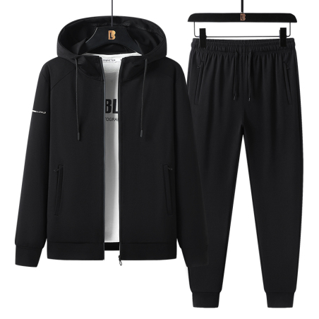 新款春秋男休闲运动套装连帽开衫棉大码跑步运动时尚两件套