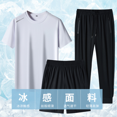 运动T恤男短袖夏季冰丝速干衣薄款健身衣服篮球训练上衣跑步套装