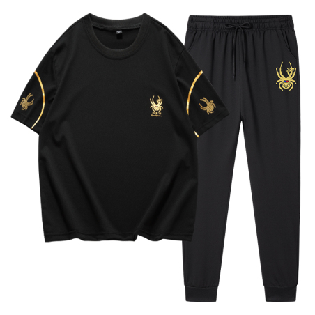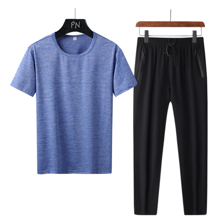 2022新款运动套装长裤阳离子短袖T恤男休闲裤男九分裤冰丝裤