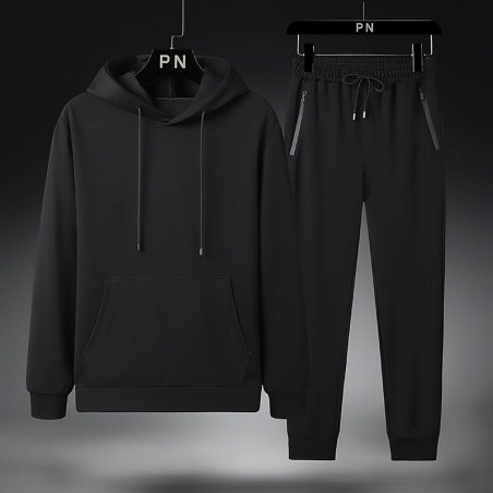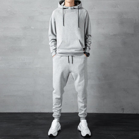 秋冬灰色长裤纯色长袖T恤春秋季卫衣连帽休闲外套运动服两件套装