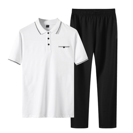 中老年运动套装男POLO衫棉短袖t恤长裤休闲两件套爸爸