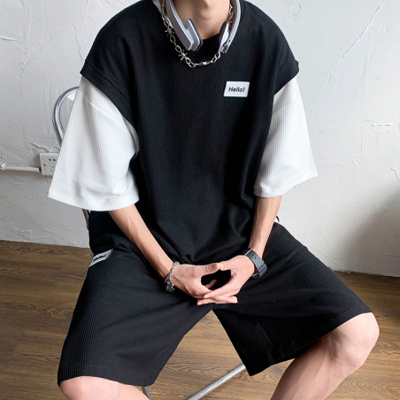 夏季透气韩版t恤短袖男两件套男士运动服男式休闲运动服套装潮