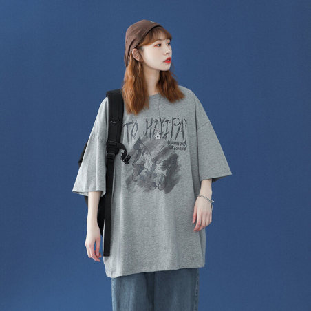 中性风-敏紫DT6039-P25100%棉2022夏季新款大码宽松短袖T恤