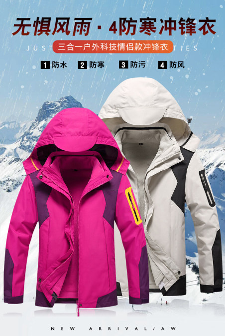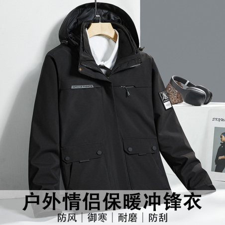 情侣冲锋衣男款加绒时尚防水风衣户外运动登山服装女工装外套多色