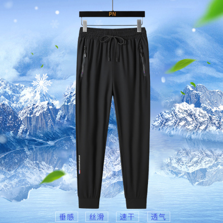 夏季长裤冰丝大码弹力两色L-8XL黑灰两色印花下装时尚休闲