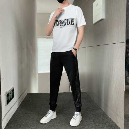 夏季男士冰丝休闲套装跑步两件套短袖t恤长裤韩版潮流运动帅气
