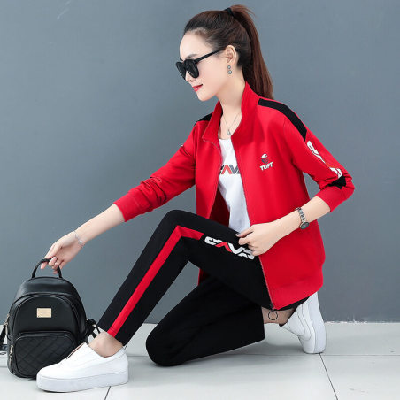 图荣运动休闲套装女春秋季韩版时尚印花开衫卫衣长裤跑步服两件套