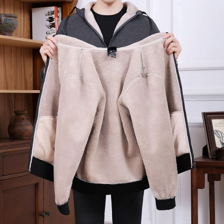 L到8XL大码纯棉中老年运动加绒套装男冬季开衫羊羔绒两件套