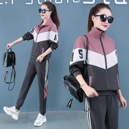 图荣长袖休闲套装女春秋季时尚嘻哈立领学生开衫卫衣运动服两件套