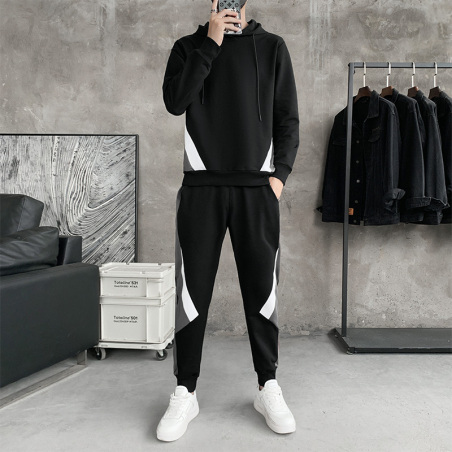 奥拼新款拼接针织运动套装套头卫衣长裤夏季爆款改公版高转化