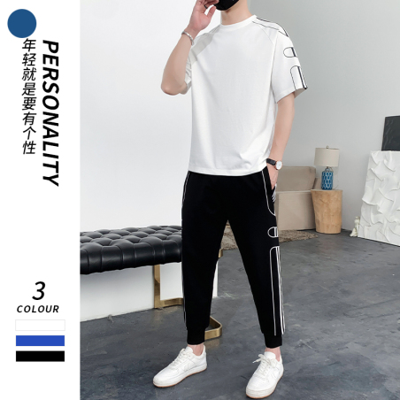 2019夏季男士运动服套装短袖t恤青少年简约体恤休闲学生薄两