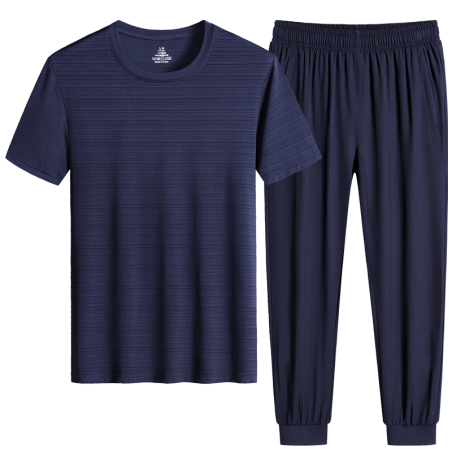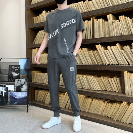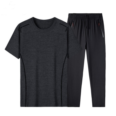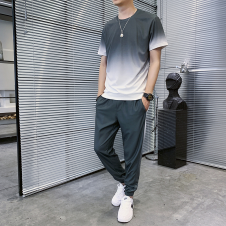 夏季男士冰丝休闲套装跑步两件套短袖t恤长裤韩版潮流运动套装