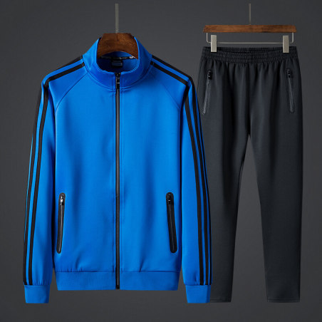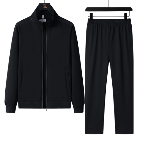 男青年春秋立领宽松休闲年长袖开衫跑步运动套装