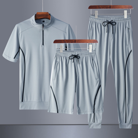 2868#夏季新款大码男士短袖短裤长裤三件套韩版潮流休闲套装