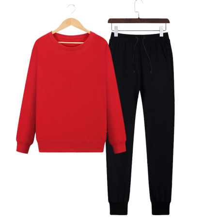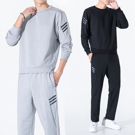 主推95%纯棉套装男纯色两件套运动服公版休闲服圆领卫衣+长裤