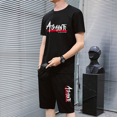夏季休闲运动套装男士2019新款短袖t桖T恤青少年韩版两件套