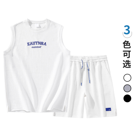 冰丝棉套装男夏季短袖潮流宽松衣服休闲运动裤男士T恤短裤套装