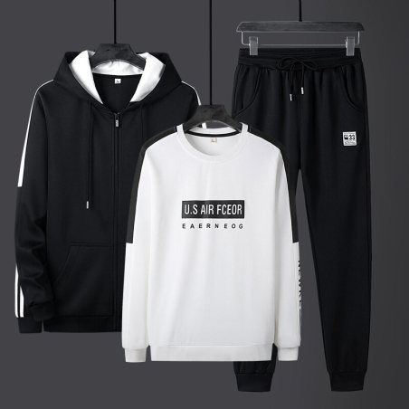 M-6XL大码圆领套头卫衣连帽开衫外套长裤运动休闲套装三件套