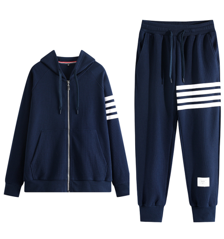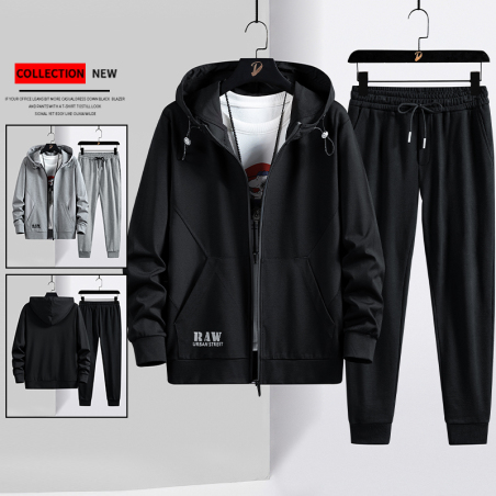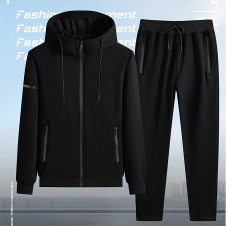 春秋季时尚简约男士连帽休闲运动两件套装男