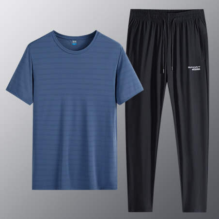 夏季高品质短袖套装男冰丝T恤长裤运动短裤男士短套夏