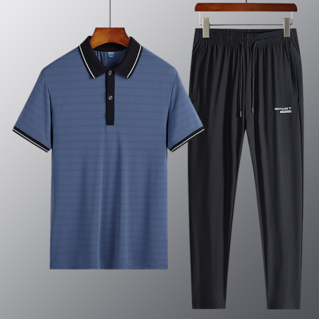 新款冰丝短袖T恤男夏季中老年休闲套装爸爸运动服短袖长裤男装