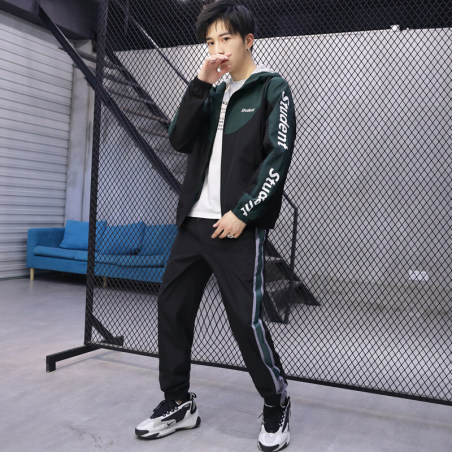 D02-3男士春秋韩版潮流新款休闲运动夹克套装