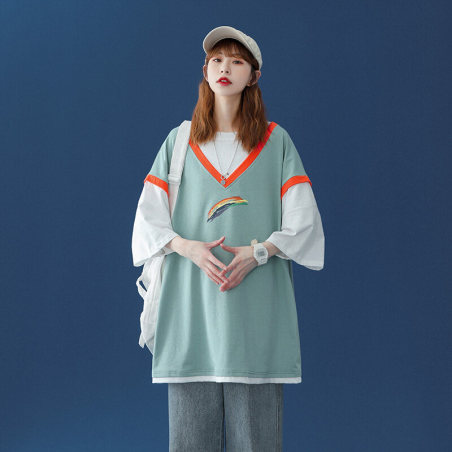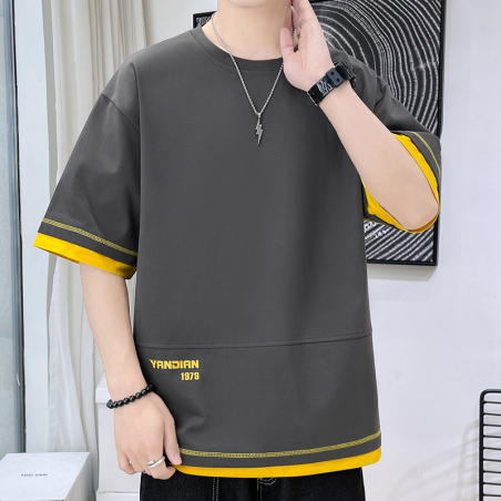 ins潮牌中国短袖t恤2022夏季韩版潮流日系纯棉假两件