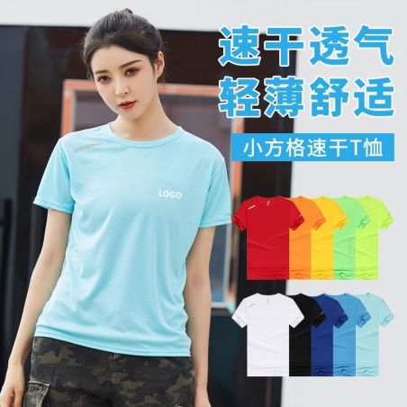 2022新款小方格礼品衣速干衣更胜网眼布定制圆领t恤衫空版