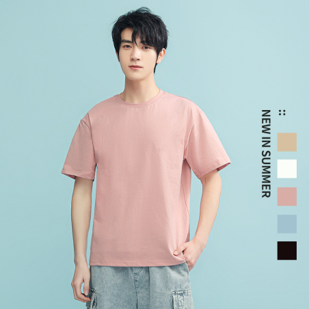 2022夏季新疆长绒棉纯棉短袖T恤圆领大落肩19个色240g