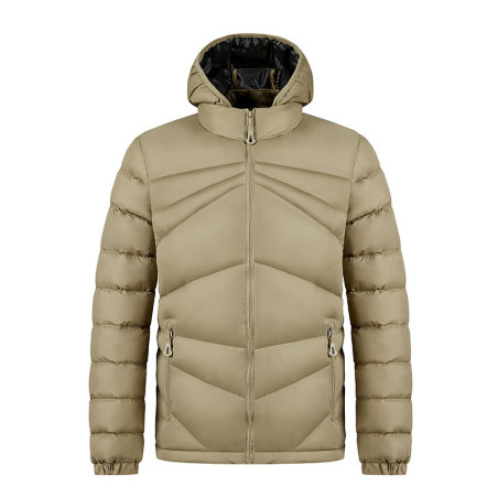 2024年秋冬款户外加绒40D格纹布拆卸帽加绒棉衣休闲外套