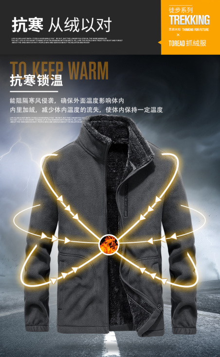 户外运动抓绒衣男休闲秋冬季卫衣男士加绒加厚摇粒绒外套男
