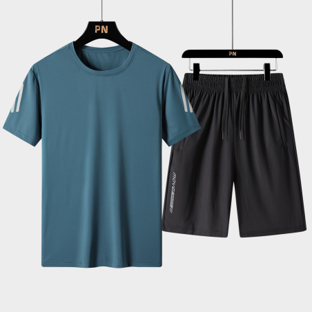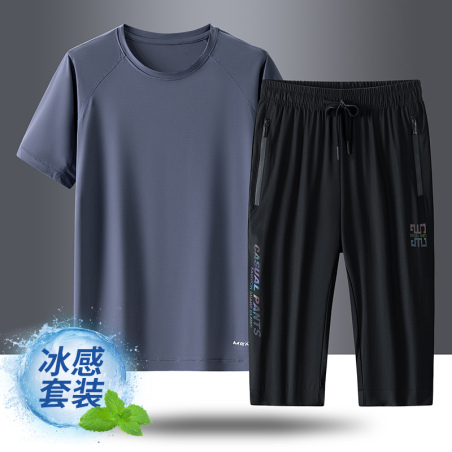 2024夏季薄款T恤套装七分裤速干冰丝短袖t恤青年运动短裤五分裤两件套