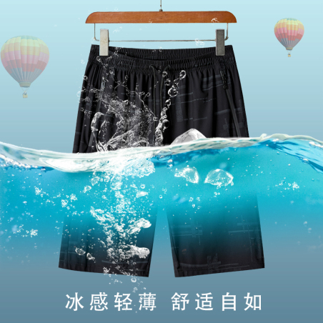 爆款冰丝短裤经编四面弹五分裤男士宽松大裤衩半截裤中裤短裤夏季
