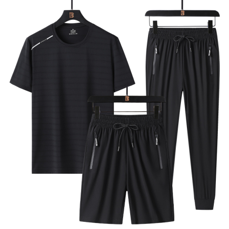 冰丝三件套短袖短裤长裤冰感高弹清凉透气休闲运动