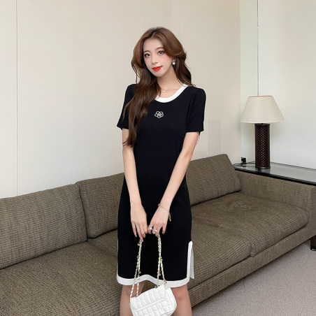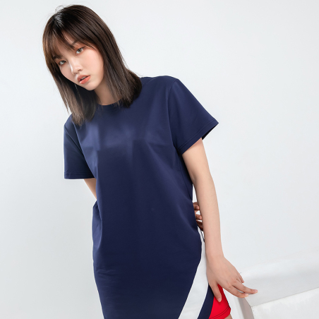 夏季新款女士短袖T恤裙卫衣短袖冰瓷棉大码宽松女装中长款连衣裙