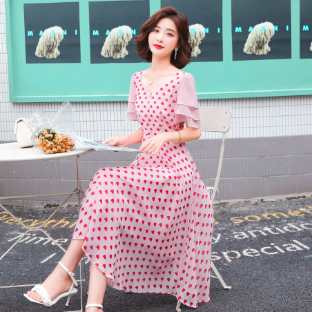 法式显瘦减龄桔梗雪纺连衣裙女2022夏季甜美气质女神范收腰波