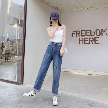 春夏新款牛仔裤女破洞九分显瘦显高萝卜裤牛仔裤网红同款